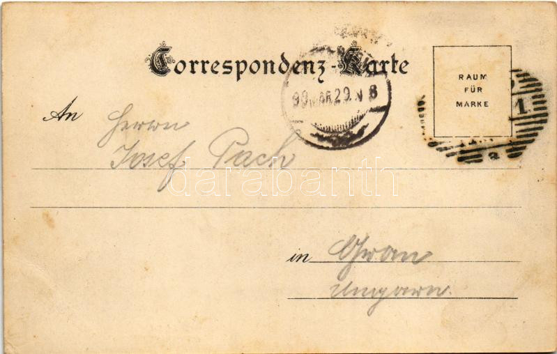 Beschreibung: 1899 (Vorläufer) Graz, Hauptplatz mit dem Rathhaus, Mausoleum, Hof im Landhaus / town hall, main square. E. Presuhn Art Nouveau, floral, litho (EK)