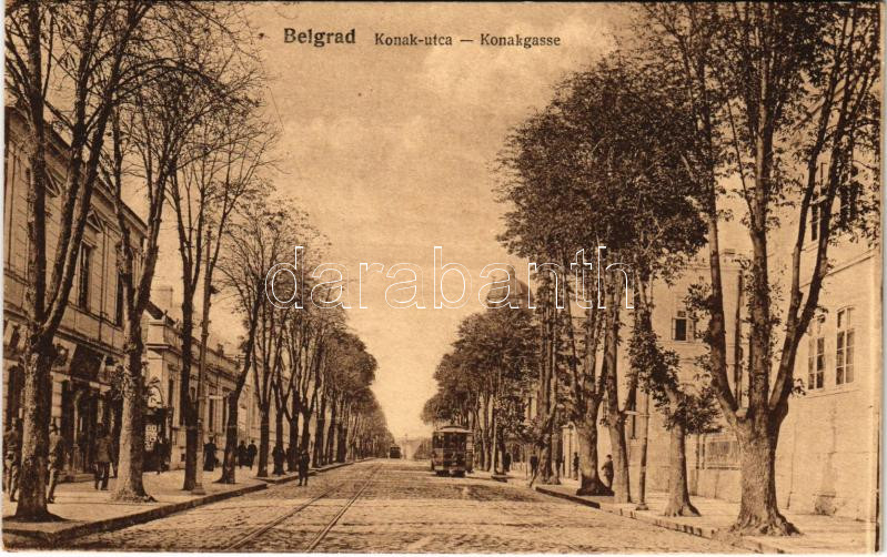 Belgrade, Belgrád; Konak utca, villamos / Konakgasse / street, tram https://www.darabanth.com/de/438-Fernauktion/438.0/Ansichtskarten/Serbien~2500064/Belgrade-Belgrad-Konak-utca-villamos-Konakgasse-street-tram~II2858303