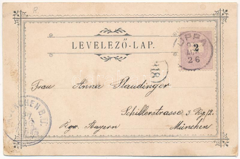 Beschreibung: 1898 (Vorläufer) Lippa, Lipova; Búza tér, román templom, Marossor, Grosz üzlete. Jos. Zach kiadása / Romanian church, Mures riverside, shop. Art Nouveau, floral (szakadás / tear)