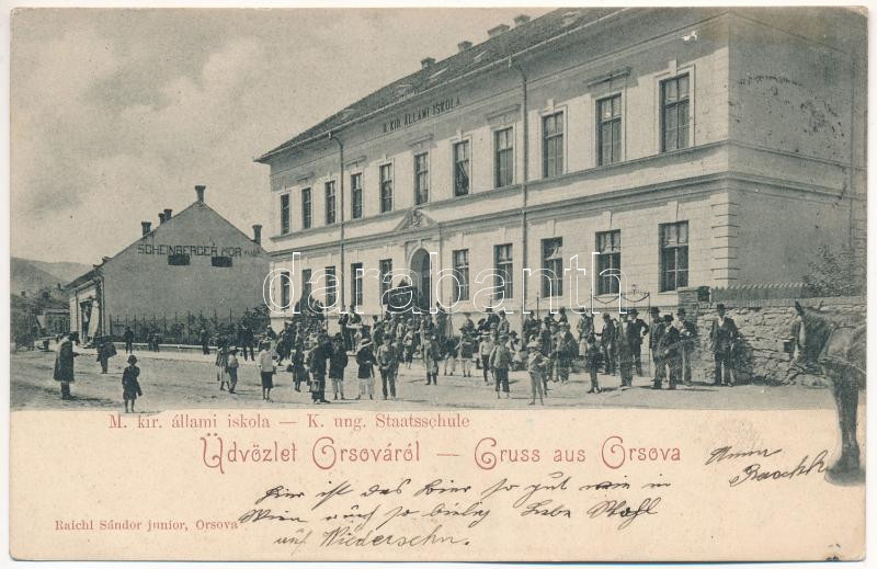 1904 Orsova, M. kir. állami iskola, Scheinberger Mór üzlete. Raichl Sá... https://www.darabanth.com/de/438-Fernauktion/438.0/Ansichtskarten/Siebenburgen~2500006/1904-Orsova-M-kir-allami-iskola-Scheinberger-Mor-uzlete-Raichl-Sandor-junior-kiadasa-sch~II2867994