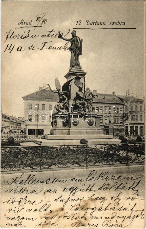 1905 Arad, Szabadság tér, Vértanú szobor, üzletek / square, monument, ... https://www.darabanth.com/de/438-Fernauktion/438.0/Ansichtskarten/Siebenburgen~2500006/1905-Arad-Szabadsag-ter-Vertanu-szobor-uzletek-square-monument-shops-Rb~II2869125