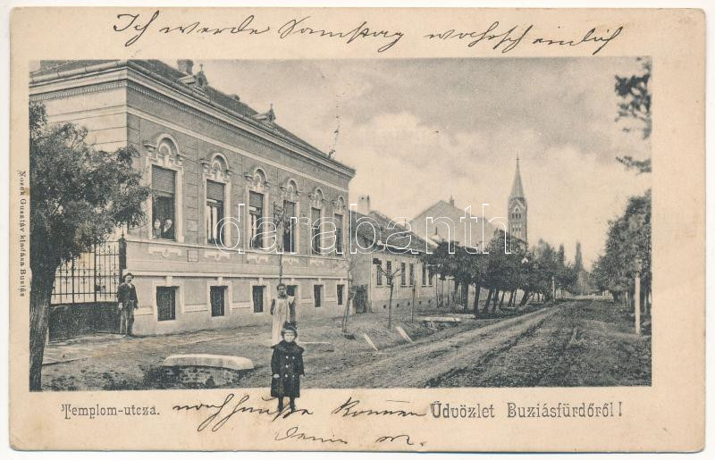 Beschreibung: 1905 Buziásfürdő, Baile Buzias; Templom utca. Nosek Gusztáv kiadása / Church Street (Rb)