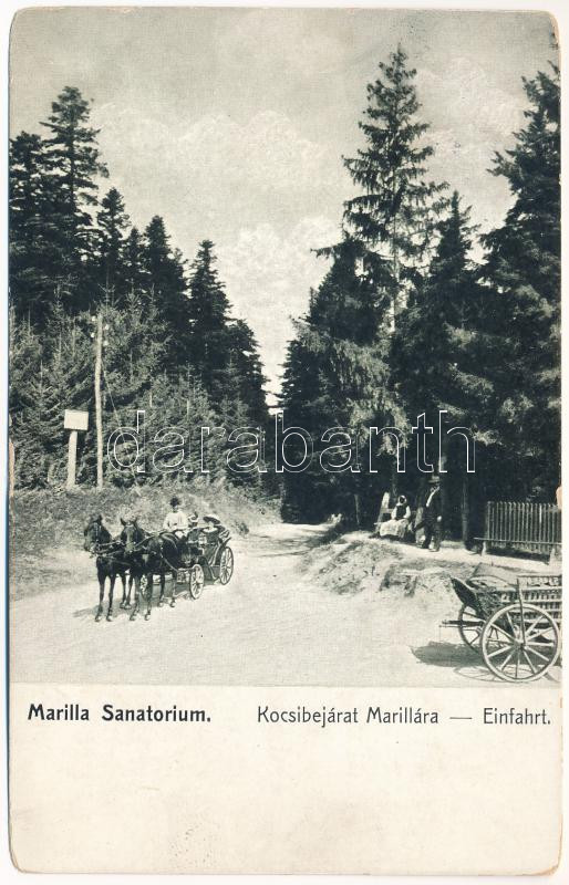 1908 Marilla, Marila; Kocsibejárat a fürdőbe, lovas hintó / Einfahrt /... https://www.darabanth.com/de/438-Fernauktion/438.0/Ansichtskarten/Siebenburgen~2500006/1908-Marilla-Marila-Kocsibejarat-a-furdobe-lovas-hinto-Einfahrt-entry-to-the-spa-horse-c~II2867802