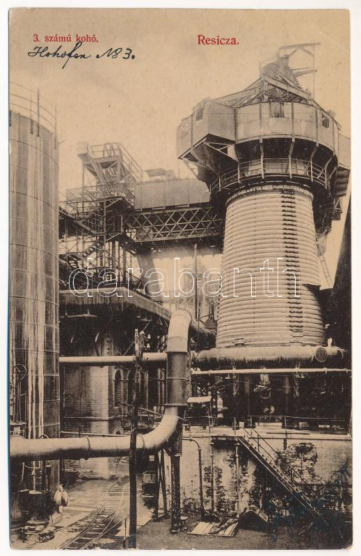 1908 Resica, Resita; 3. számú kohó a vasgyárban. Neff Antal kiadása / ... https://www.darabanth.com/de/438-Fernauktion/438.0/Ansichtskarten/Siebenburgen~2500006/1908-Resica-Resita-3-szamu-koho-a-vasgyarban-Neff-Antal-kiadasa-iron-works-factory-furn~II2866383
