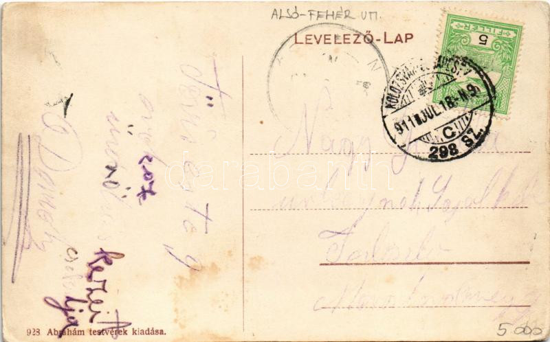 Beschreibung: 1911 Tövis, Teius; vasútállomás. Abrahám testvérek kiadása / railway station + "KOLOZSVÁR - BUDAPEST 298. SZ. C" vasúti mozgóposta bélyegző (kopott sarkak / worn corners)