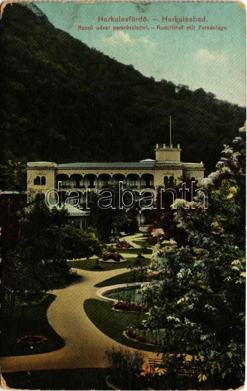 1916 Herkulesfürdő, Baile Herculane; Rezső udvar parkja / Rudolfshof m... https://www.darabanth.com/de/438-Fernauktion/438.0/Ansichtskarten/Siebenburgen~2500006/1916-Herkulesfurdo-Baile-Herculane-Rezso-udvar-parkja-Rudolfshof-mit-Parkanlage-EK~II2862415