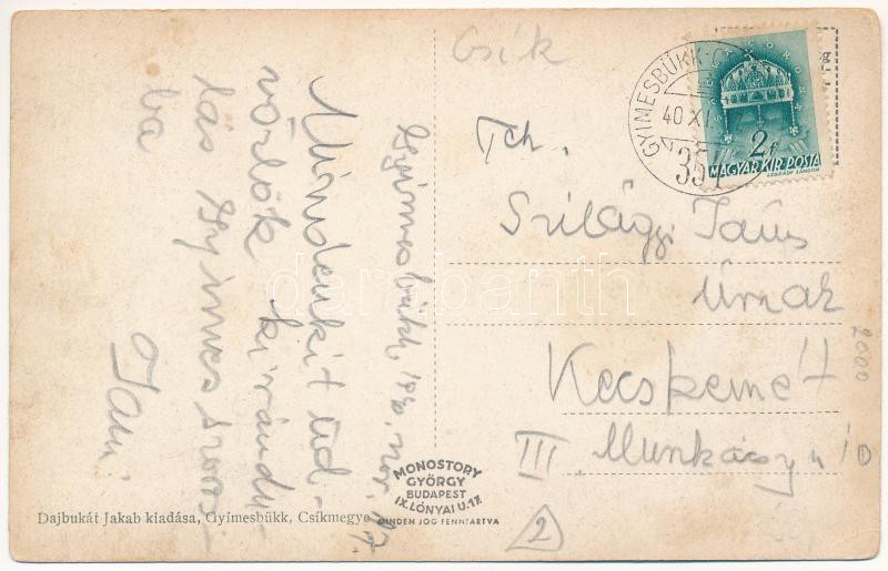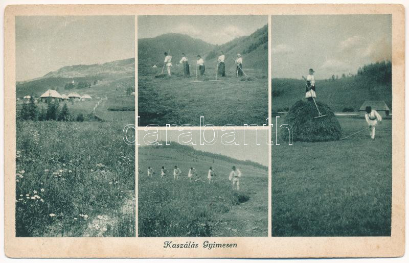 1940 Gyimes, Ghimes; kaszálás, mezőgazdasági munka. Dajbukát Jakab kia... https://www.darabanth.com/de/438-Fernauktion/438.0/Ansichtskarten/Siebenburgen~2500006/1940-Gyimes-Ghimes-kaszalas-mezogazdasagi-munka-Dajbukat-Jakab-kiadasa-reaping-agricult~II2868039