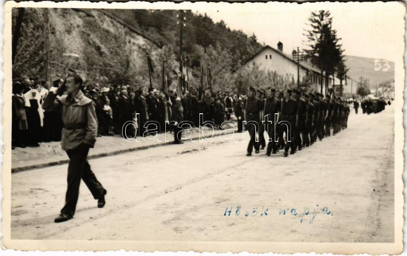 Beschreibung: 1944 Székelyudvarhely, Odorheiu Secuiesc; Hősök napja, táborba vonulás / military parade, leaving to the camp. photo (EK)