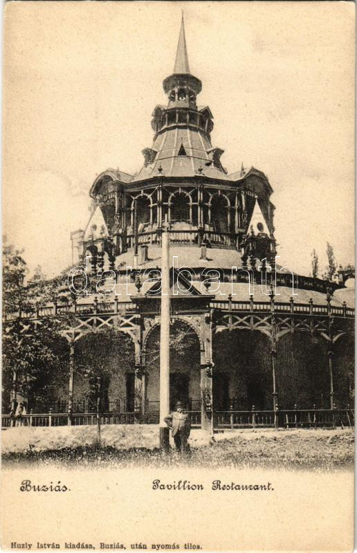 Buziás, Pavillion Restaurant / Étterem pavilon. Huzly István kiadása https://www.darabanth.com/de/438-Fernauktion/438.0/Ansichtskarten/Siebenburgen~2500006/Buzias-Pavillion-Restaurant-Etterem-pavilon-Huzly-Istvan-kiadasa~II2868529
