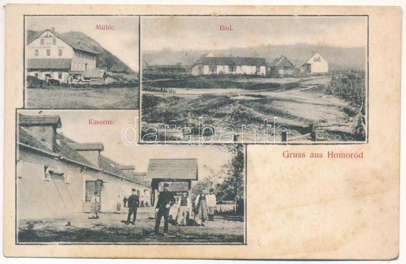 Homoród, Homorod; Mühle, Bad, Kaserne / malom, fürdő, katonai laktanya... https://www.darabanth.com/de/438-Fernauktion/438.0/Ansichtskarten/Siebenburgen~2500006/Homorod-Homorod-Muhle-Bad-Kaserne-malom-furdo-katonai-laktanya-Resiter-Johann-kiadasa-~II2866215