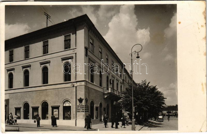 Kolozsvár, Cluj; Mátyás király tér és Jókai utca sarok, Rhédey ház, IBUSZ MÁV hivatalos menetjegyiroda, "Ellenzék" politikai és társadalmi napilap irodája / square, street, newspaper and ticket offices, automobiles (EK)