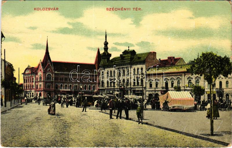 Kolozsvár, Cluj; Széchenyi tér, piac / market square (kopott sarkak / ... https://www.darabanth.com/de/438-Fernauktion/438.0/Ansichtskarten/Siebenburgen~2500006/Kolozsvar-Cluj-Szechenyi-ter-piac-market-square-kopott-sarkak-worn-corners~II2863686
