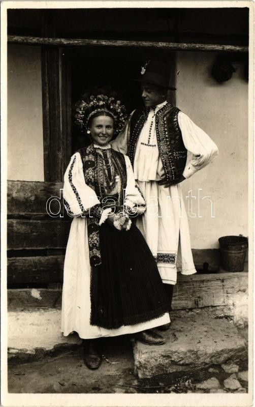 Beschreibung: Marótlaka, Morlaka, Morlaca (Kolozs); Román fiatal pár / Pareche logodita / Romanian folklore. Foto orig. J. Fischer 1935