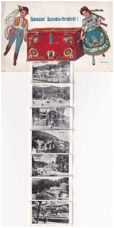 Szováta-fürdő, Sovata; népviseletes leporellólap 10 képpel, Körtesi K.... https://www.darabanth.com/de/438-Fernauktion/438.0/Ansichtskarten/Siebenburgen~2500006/Szovata-furdo-Sovata-nepviseletes-leporellolap-10-keppel-Kortesi-K-fenykepesz-felvete~II2859637