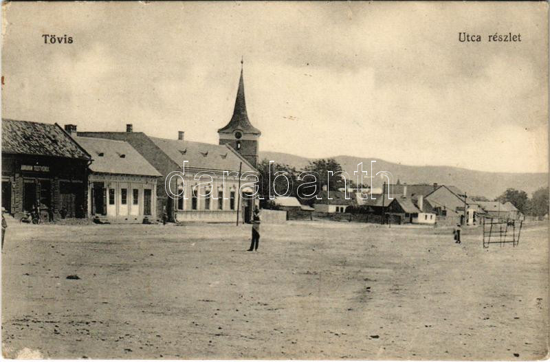 Beschreibung: Tövis, Teius; utca, Ábrahám testvérek üzlete. Magyar Automatagyár és kölcsönző rt. / street, shop