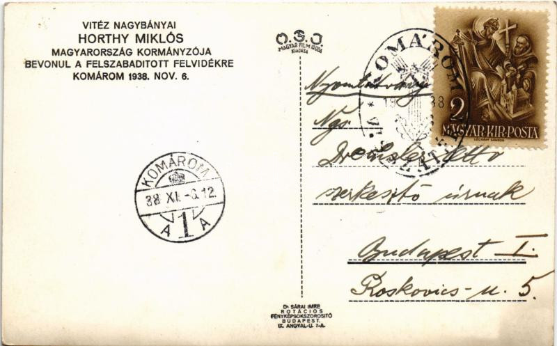 1938 Komárom, Komárnó; bevonulás, Horthy Miklós, Purgly Magdolna, Imré... https://www.darabanth.com/de/438-Fernauktion/438.0/Ansichtskarten/Slowakei~2500014/1938-Komarom-Komarno-bevonulas-Horthy-Miklos-Purgly-Magdolna-Imredy-Bela-Teleki-Pal-~II2861187