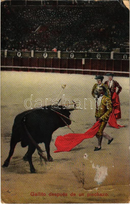 Gallito después de un pinchazo / spanyol bikaviadal / Spanish folklore... https://www.darabanth.com/de/438-Fernauktion/438.0/Ansichtskarten/Sport~2500084/Gallito-despues-de-un-pinchazo-spanyol-bikaviadal-Spanish-folklore-bull-fight-sport-EB~II2867511