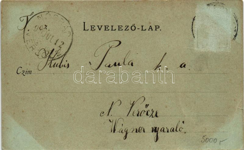 Beschreibung: 1899 (Vorläufer) Nagymaros, Nagy-Maros látképe. Divald Károly 23. sz. (szakadás / tear)