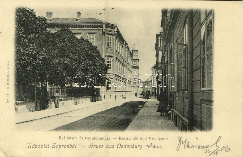1906 Sopron, Reáliskola, Templom utca. L. Kummert No. 64. (EK) https://www.darabanth.com/de/438-Fernauktion/438.0/Ansichtskarten/Ungarn~2500005/1906-Sopron-Realiskola-Templom-utca-L-Kummert-No-64-EK~II2865254