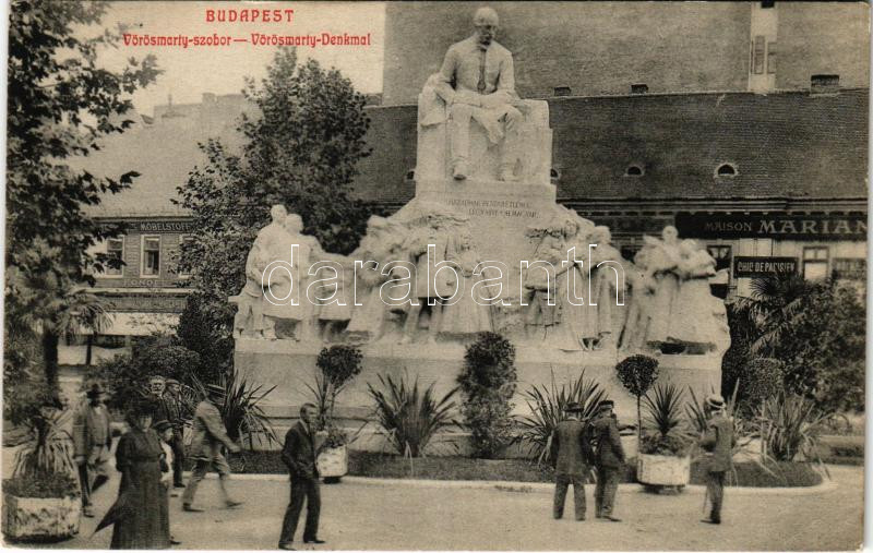 1909 Budapest V. Vörösmarty szobor, Maison Marianne női kalapterem üzl... https://www.darabanth.com/de/438-Fernauktion/438.0/Ansichtskarten/Ungarn~2500005/1909-Budapest-V-Vorosmarty-szobor-Maison-Marianne-noi-kalapterem-uzlete-EK~II2861337