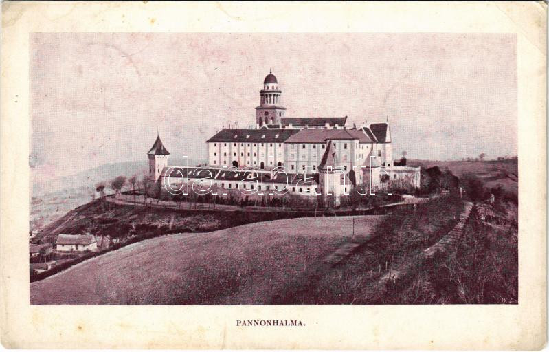1911 Pannonhalma, Győrszentmárton; Bencés apátság (vágott / cut) https://www.darabanth.com/de/438-Fernauktion/438.0/Ansichtskarten/Ungarn~2500005/1911-Pannonhalma-Gyorszentmarton-Bences-apatsag-vagott-cut~II2865649