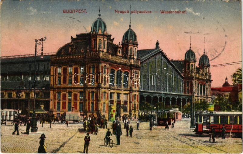 1916 Budapest VI. Nyugati pályaudvar, vasútállomás, villamosok (EB) https://www.darabanth.com/de/438-Fernauktion/438.0/Ansichtskarten/Ungarn~2500005/1916-Budapest-VI-Nyugati-palyaudvar-vasutallomas-villamosok-EB~II2871204