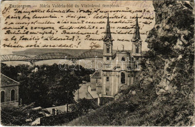 Beschreibung: 1918 Esztergom, Mária Valéria híd, Vízivárosi templom. Groszner B. kiadása (EK)