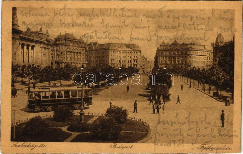 Beschreibung: 1920 Budapest V. Szabadság tér, villamos