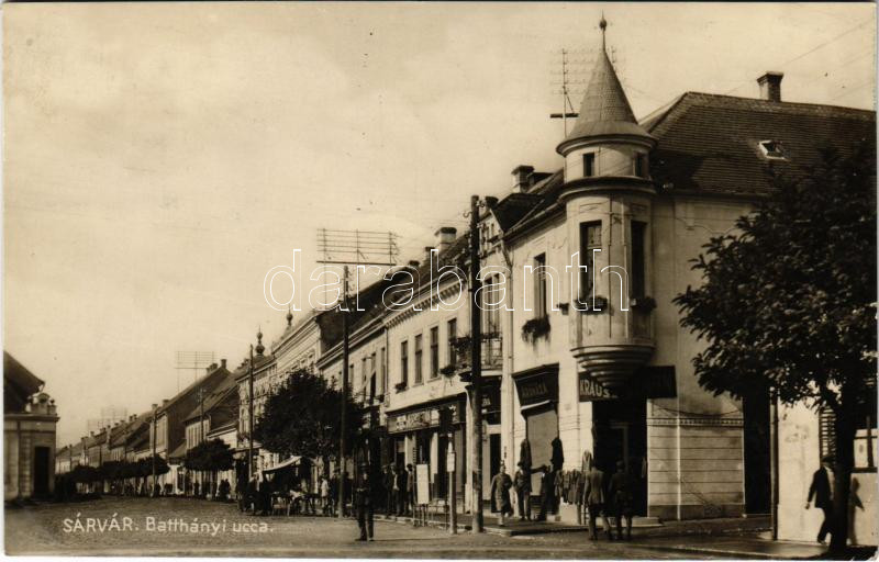 1930 Sárvár, Batthyány utca, Krausz Simon, Mészáros István üzlete, dro... https://www.darabanth.com/de/438-Fernauktion/438.0/Ansichtskarten/Ungarn~2500005/1930-Sarvar-Batthyany-utca-Krausz-Simon-Meszaros-Istvan-uzlete-drogeria-Schnobel-Feren~II2871144