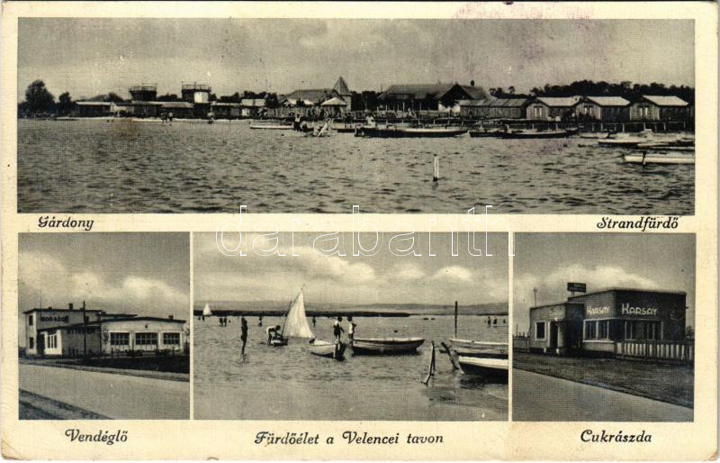 1938 Gárdony, Strandfürdő, vendéglő, fürdőélet a Velencei tavon, Karsa... https://www.darabanth.com/de/438-Fernauktion/438.0/Ansichtskarten/Ungarn~2500005/1938-Gardony-Strandfurdo-vendeglo-furdoelet-a-Velencei-tavon-Karsay-cukraszda-Rb~II2871537