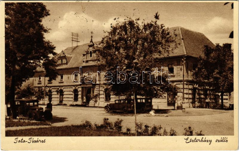 1939 Tatatóváros, Tata-Tóváros; Eszterházy szálló, autók https://www.darabanth.com/de/438-Fernauktion/438.0/Ansichtskarten/Ungarn~2500005/1939-Tatatovaros-Tata-Tovaros-Eszterhazy-szallo-autok~II2869652