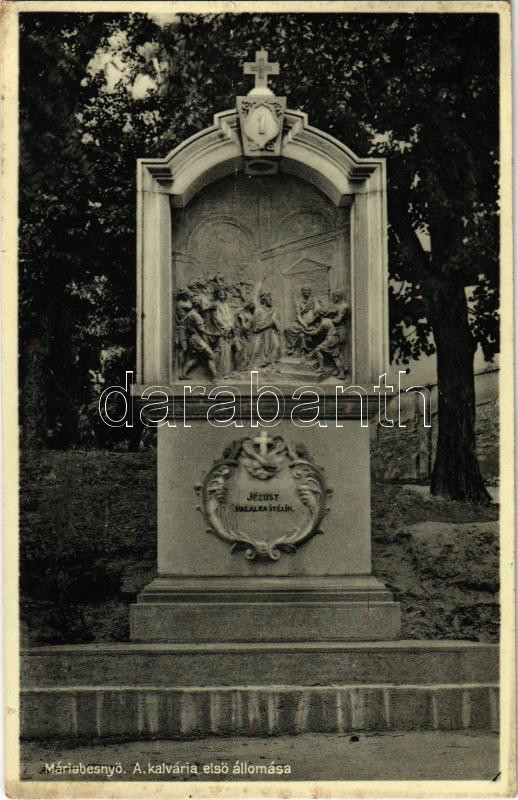 Beschreibung: 1941 Máriabesnyő (Gödöllő), Kálvária első állomása (fa)