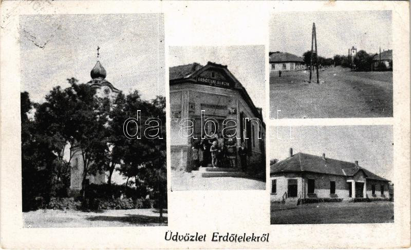 Beschreibung: 1943 Erdőtelek, Római katolikus templom, Fő utca, Erdőtelki Hangya Szövetkezet üzlete és vendéglője és saját kiadása (EK)