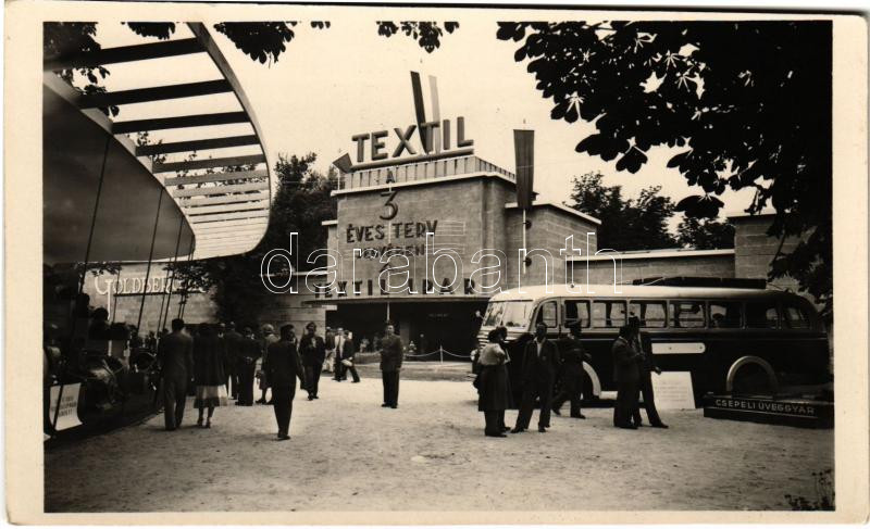 1948 Budapest XIV. Nemzetközi Vásár (BNV) a Centenárium évében, Textilipar a 3 éves terv jegyében, Csepeli Üveggyár, Goldberger, autóbusz + "A NÉP IPARA - A NÉP EREJE 1848-1948 BNV Budapest" So. Stpl.