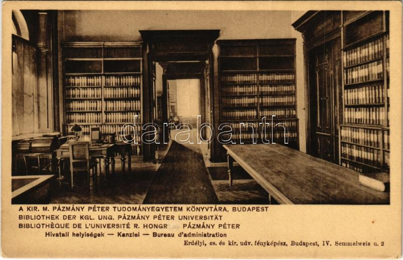 Budapest V. M. kir. Pázmány Péter Tudományegyetem könyvtára, hivatali ... https://www.darabanth.com/de/438-Fernauktion/438.0/Ansichtskarten/Ungarn~2500005/Budapest-V-M-kir-Pazmany-Peter-Tudomanyegyetem-konyvtara-hivatali-helyisegek-belso-Erd~II2865293