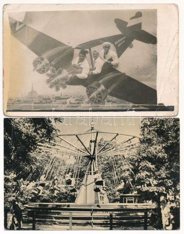 Beschreibung: Budapest XIV. Városliget, Vidámpark - 4 db modern képeslap (Képzőművészeti Alap Kiadóvállalat), közte 1 fotó