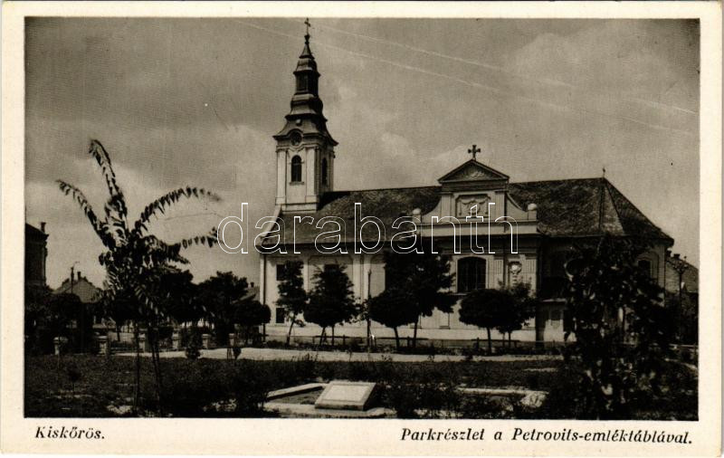 Kiskőrös, Park és Petrovits emléktábla, templom https://www.darabanth.com/de/438-Fernauktion/438.0/Ansichtskarten/Ungarn~2500005/Kiskoros-Park-es-Petrovits-emlektabla-templom~II2864811