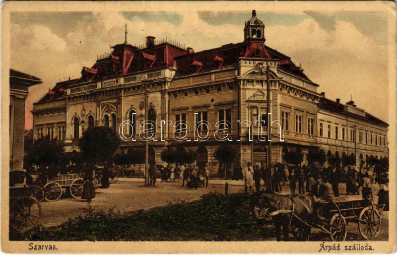 Szarvas, Árpád szálloda, piac, lovaskocsik. Nagy Sándor kiadása (EK) https://www.darabanth.com/de/438-Fernauktion/438.0/Ansichtskarten/Ungarn~2500005/Szarvas-Arpad-szalloda-piac-lovaskocsik-Nagy-Sandor-kiadasa-EK~II2864291