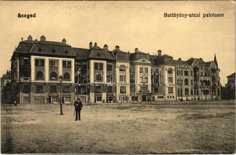 Beschreibung: Szeged, Batthyány utcai palotasor, Bétsch és Dékány, Koncz Antal, Hajós Ferencz üzlete. Grünwald Herman kiadása