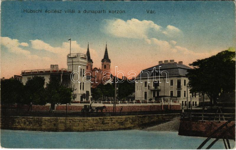 Vác, Hübschl építész villái a dunaparti korzón. Báskay Dezső fényképés... https://www.darabanth.com/de/438-Fernauktion/438.0/Ansichtskarten/Ungarn~2500005/Vac-Hubschl-epitesz-villai-a-dunaparti-korzon-Baskay-Dezso-fenykepesz-fl~II2859840