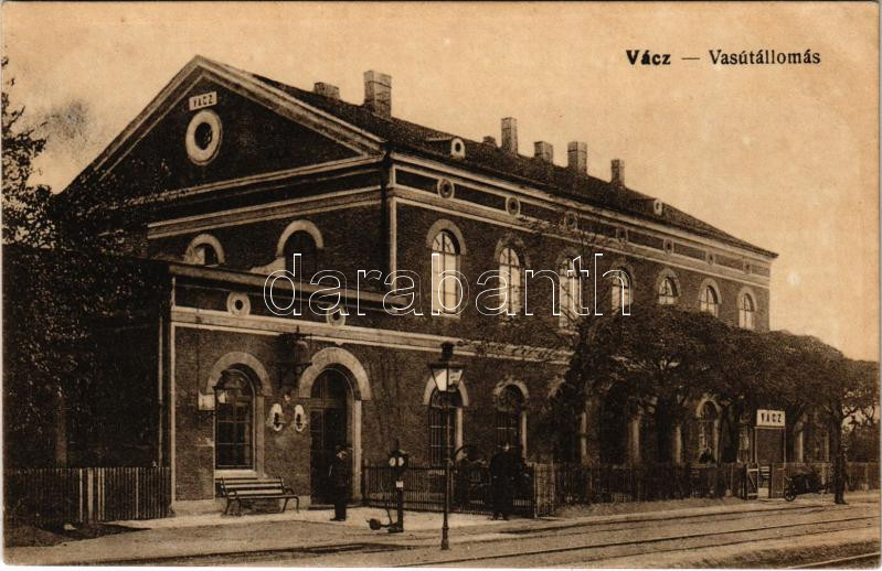 Vác, vasútállomás. Vasúti levelezőlapárusítás 8314. https://www.darabanth.com/de/438-Fernauktion/438.0/Ansichtskarten/Ungarn~2500005/Vac-vasutallomas-Vasuti-levelezolaparusitas-8314~II2862546