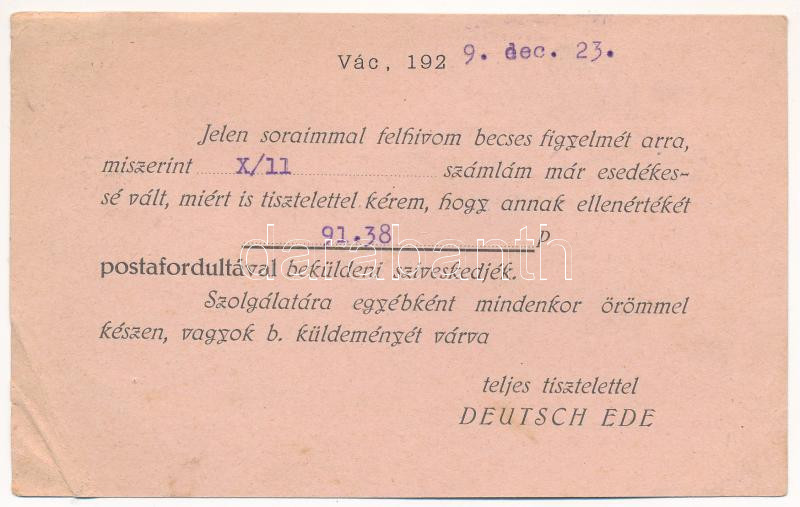 1929 Deutsch Ede szalmakötél és ecetgyára. Vác, Vásár tér 15. - reklám... https://www.darabanth.com/de/438-Fernauktion/438.0/Ansichtskarten/Werbungen~2500080/1929-Deutsch-Ede-szalmakotel-es-ecetgyara-Vac-Vasar-ter-15-reklam-EB~II2864677