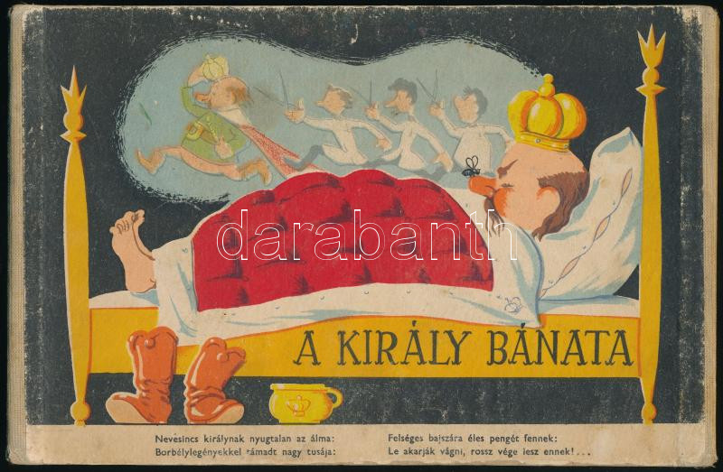 Beschreibung: A király bánata. Szerk.: Erényi András. Bp., Athenaeum, kihajtható, kemény-táblás mesekönyv, kopott táblákkal.
