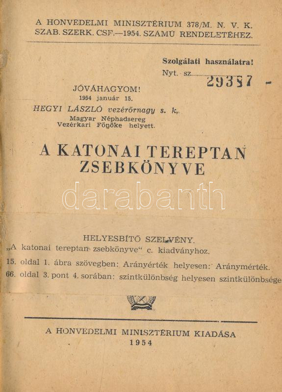 A katonai tereptan zsebkönyve. Sajtó alá rendezték: Rédey István, Horváth Andor, Róbert Ottó. Bp., 1954., Honvédelmi Minisztérium, 173 p. Kiadói kopott papírkötés.