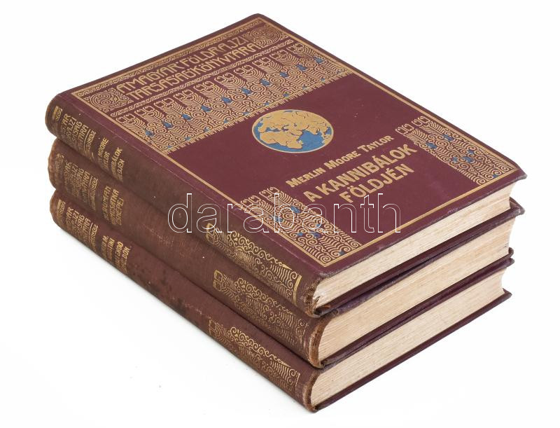 Magyar Földrajzi Társaság Könyvtára 3 kötete: [Agostini, Alberto Maria de (1883-1960)] Alberto M. De Agostini: Tíz esztendő a Tűzföldön. Fordította: Cholnoky Béla. Magyar Földrajzi Társaság Könyvtára. Bp.,én., Lampel R. (Wodianer F. és Fiai), 209+2 p.+28 t. Kiadói dúsan aranyozott egészvászon sorozatkötés, kopott borítóval, foltos gerinccel. [Bergman, Sten (1895-1975)] Sten Bergman: Kamcsatka ősnépei, vadállatai és tűzhányói között. Fordította: Dr. Cholnoky Béla. A Magyar Földrajzi Társaság Könyvtára. Bp., é.n., Lampel R. (Wodianer F. és Fiai) Rt., 272 p.+23 t. Fekete-fehér fotókkal, és egy térképpel. Kiadói dúsan aranyozott egészvászon sorozatkötésben, kopott borítóval. [Merlin Moore Taylor (1886-1939)] Merlin Moore Taylor: A kannibálok földjén. Barangolás Pápua szívében. Fordította: Halász Gyula. Magyar Földrajzi Társaság Könyvtára. Bp.,én., Lampel R. (Wodianer F. és Fiai) Rt., 1 t.+188+1 p.+19 t. Fekete-fehér fotókkal és egy térképpel illusztrált. Kiadói dúsan aranyozott egészvászon sorozatkötésben, kopott borítóval.