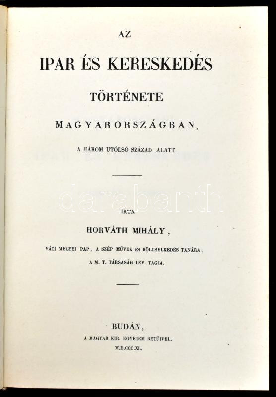 Horváth Mihály: Az ipar és kereskedés története Magyarországban, a három utolsó század alatt. Bp.,1984, ÁKV. Kiadói aranyozott egészvászon-kötés, jó állapotban.