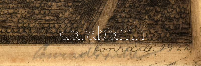 Beschreibung: Conrad Gyula (1877-1959): Budapest, bazilika. Rézkarc, papír, jelzett, kissé foltos, üvegezett fakeretben, 19,5×14 cm