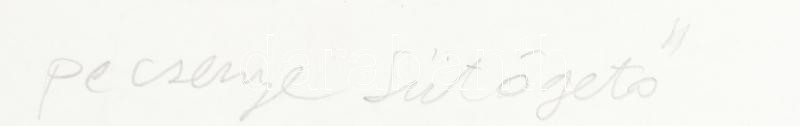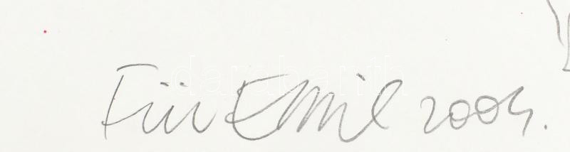 Beschreibung: Für Emil (1967-): Pecsenye sütögető, 2004. Ceruza, akril, papír, jelzett, hátoldalán autográf felirattal, 35×50 cm