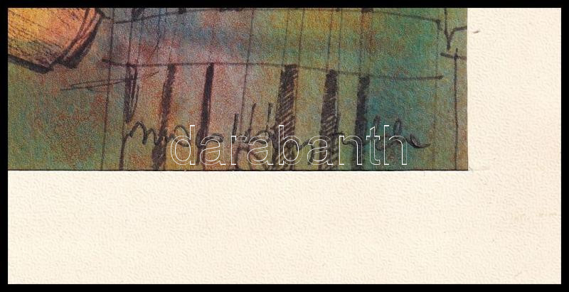 Beschreibung: Macskássy Izolda (1945-2021): Páva a kerítésen. Vegyes technika, papír, jelzett. Paszpartuban. 33x14 cm