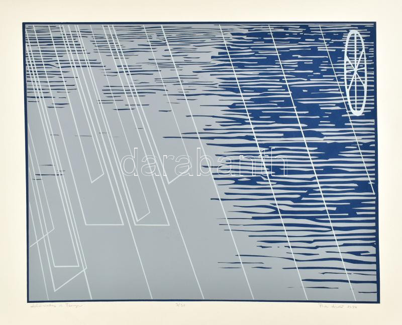 Beschreibung: Pirk László (1953-): Labirintus és tenger, 1980. Szitanyomat, papír, jelzett, számozott (3/30), 40,5×50 cm